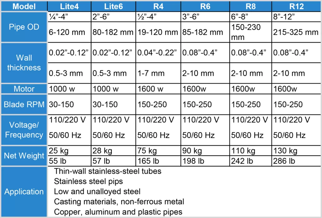 - The cutting speed regulation can be adjusted to cut different wall thickness pipe